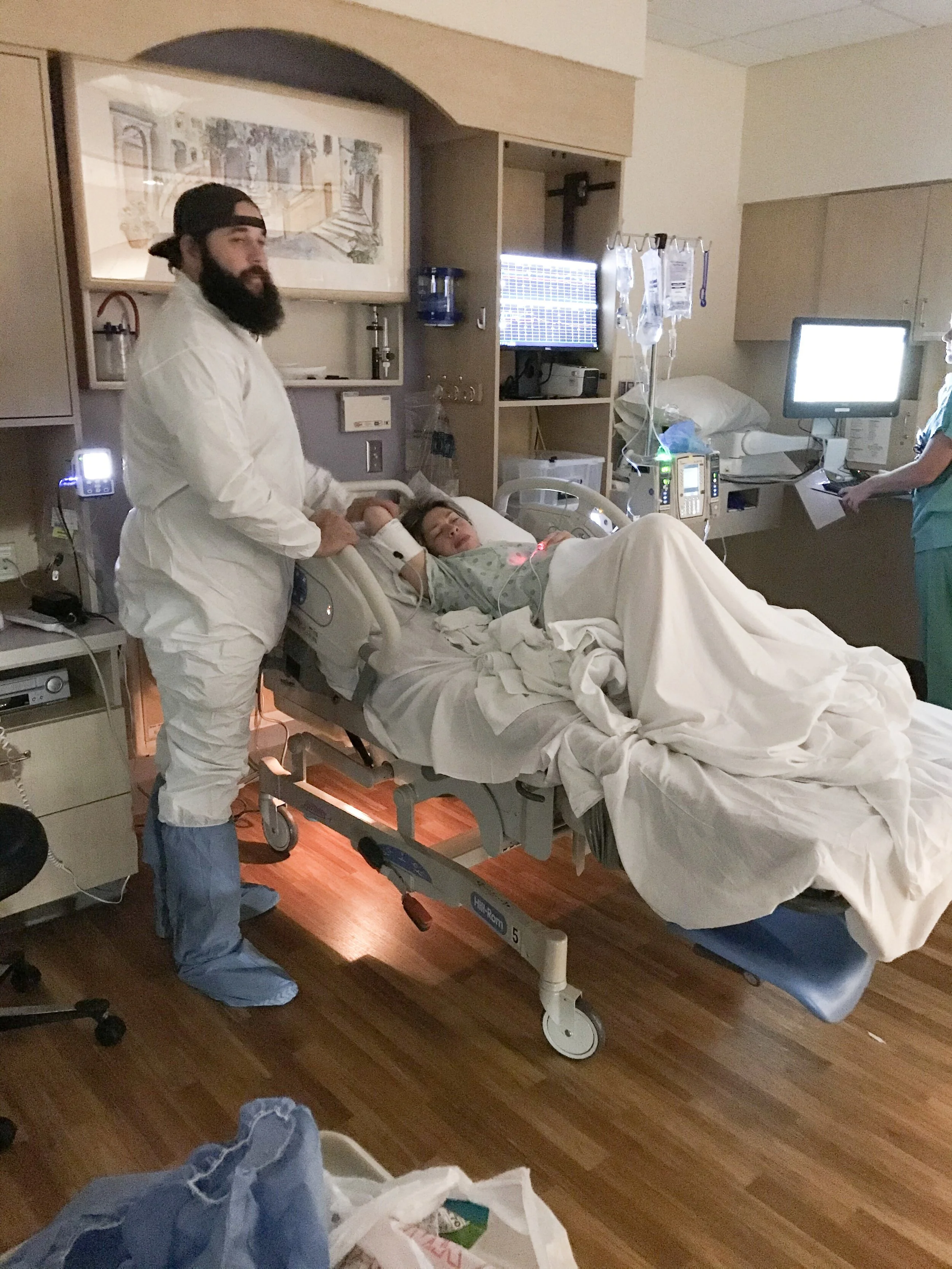 Around 10 o’clock Mike told me to stop moaning, that he gets it I’m in labor, and it has sounded like I’ve been having an orgasm for the past 12 hours, I assured him he had no idea and that definitely was not the case. I was so thrilled with his empathy (just kidding). He and Henry took themselves to bed and were peacefully sleeping. I on the other hand was in severe pain on our couch trying to find any possible position to get comfortable. And once again after 50 minutes the contractions got further apart. I was in so much pain that my whole body was shaking, I waited a little while then called the Dr. back and told them I needed to come back in. I went and woke Mike up and told him we needed to go back to the hospital and he told me I needed to lay down. I suggested he get up and get in the car because I already called the Dr. and they are waiting for me. So back to the hospital we went.