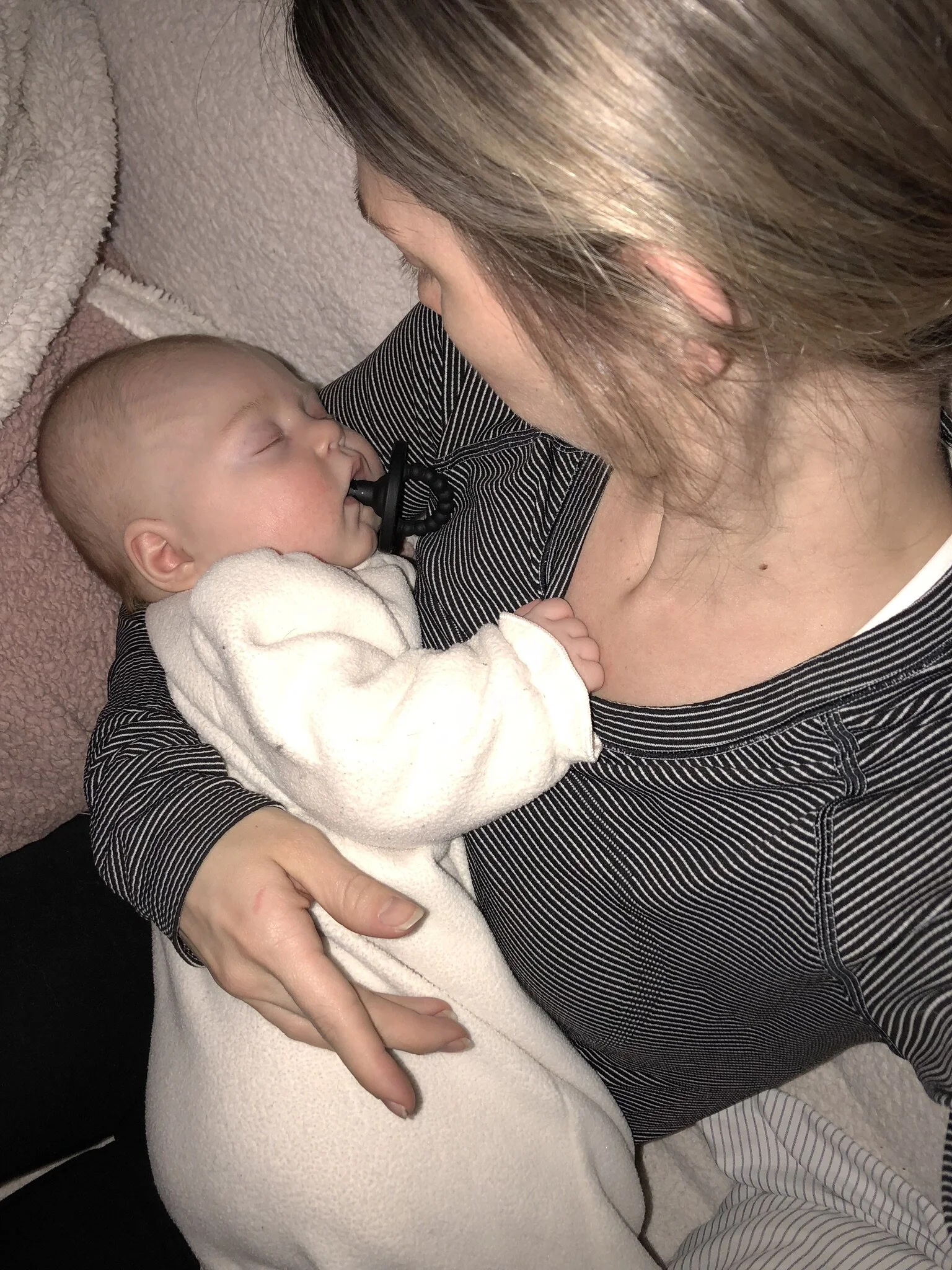 There is no other way to describe my reaction other than PANIC, all out panic. What the hell was this, and why was it happening. Mike tried to tell me it was just baby spit up and I told him I was sure it wasn’t. This wasn’t normal we needed to take her to the hospital. That was not like any other baby spit up I’d ever seen. She seemed fine, wasn’t crying, obviously smiling and happy, but once again I could barley breath. Nothing can happen to her, what if something is seriously wrong? Was that blood? I was a wreck. Then she started screaming while we were waiting for the dr to call us back and of course this was around 12 am. Mike told me I needed to feed her but I didn’t want to, I couldn’t. What if I fed her and this happened again and we were asleep. My anxiety was so bad. Morning soon came and she was perfectly fine and this never happened again, but I couldn’t get past the “what if”. I hated feeding her through the night because I was too scared to put her back in her basket, and she would never burp. Instead of going back to sleep I would sit up holding her pretty much until her next feeding. I was getting absolutely no sleep and I was always worried. I dreaded bedtime.