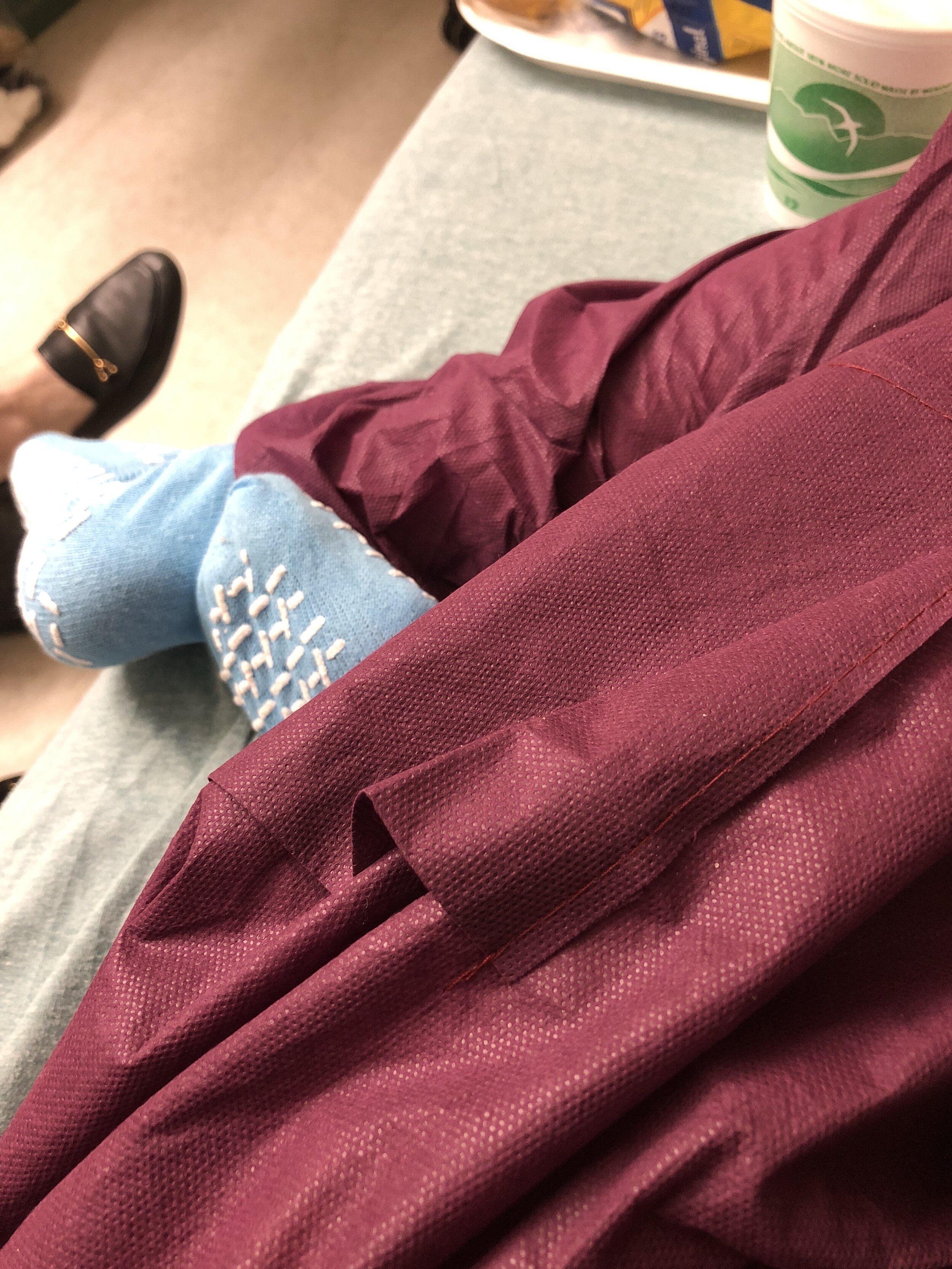 We arrived at the ER and I was put into a special room because I wasn’t “safe" to have around others and I needed to be watched, even with my mom there. I was given a pair of purple scrubs and they took everything from me including my phone. I was officially a psych patient.